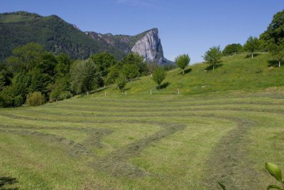 Damit das Heu für die Winterfütterung der Kühe gewonnen werden kann, wird das Gras im Sommer gemäht. Um die Lebensräume der kleineren Bewohner trotzdem zu erhalten, greifen die Bauern auf eine traditionelle Wirtschaftsweise zurück: Die Mahdzeitpunkte werden zeitlich gestaffelt und räumlich unterschiedlich über die Flächen aufgeteilt. Durch diese kleinflächige, mosaikartige Bewirtschaftungsweise mäht man nie alle Grünflächen auf einmal.